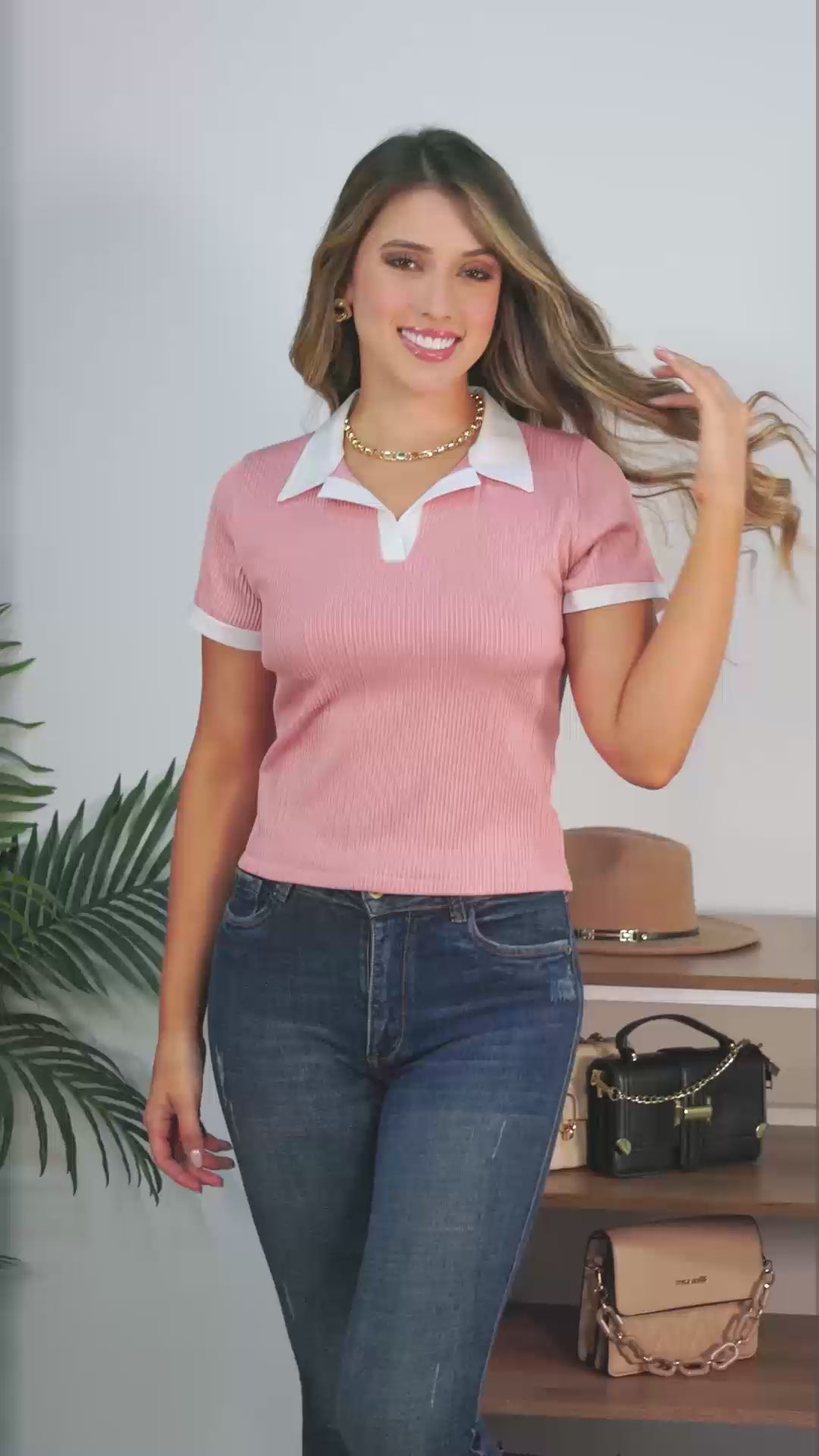 Con un estilo casual pero chic, esta blusa tipo polo  es perfecta para looks frescos y versátiles. Su tejido acanalado se ajusta suavemente al cuerpo y le da un toque moderno a un clásico atemporal.