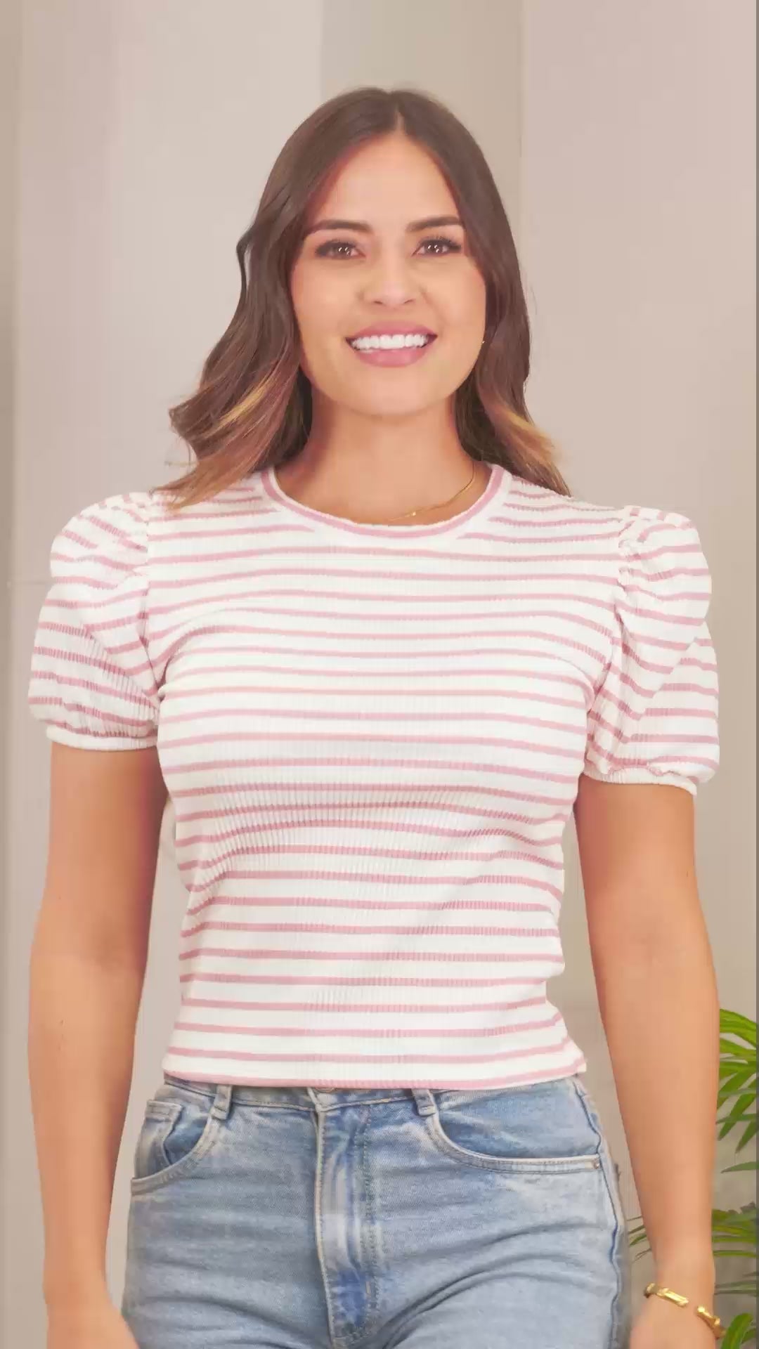 Perfecta para sumar estilo sin esfuerzo, esta blusa ajustada con delicadas mangas recogidas realza la figura y aporta un toque fresco a cualquier look. Su textura suave se adapta cómodamente al cuerpo, creando un balance ideal entre comodidad y moda.