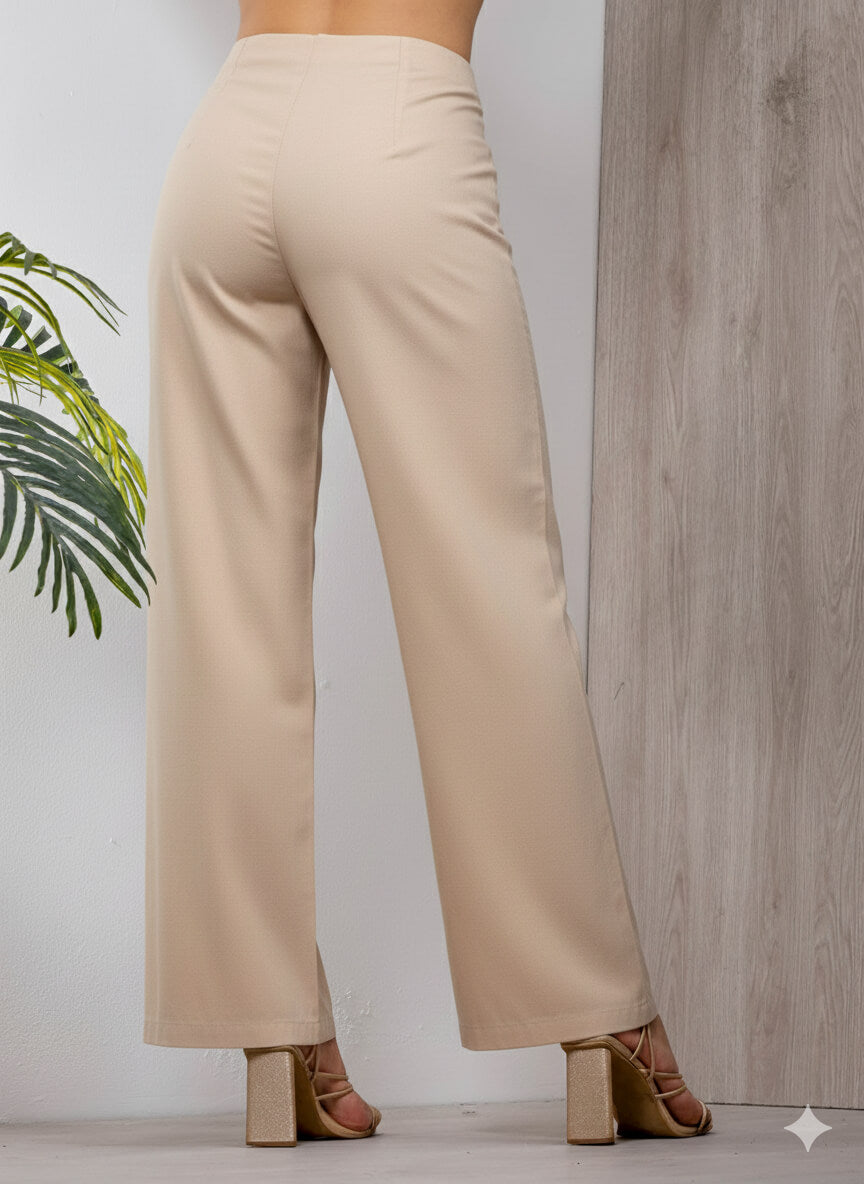 Aporta elegancia relajada a tus looks con este pantalón de tiro alto y silueta amplia que estiliza la figura sin perder comodidad. Su detalle de lazo frontal le da un toque femenino y sofisticado, perfecto para combinar con tops ajustados, blusas livianas o prendas más estructuradas según la ocasión.