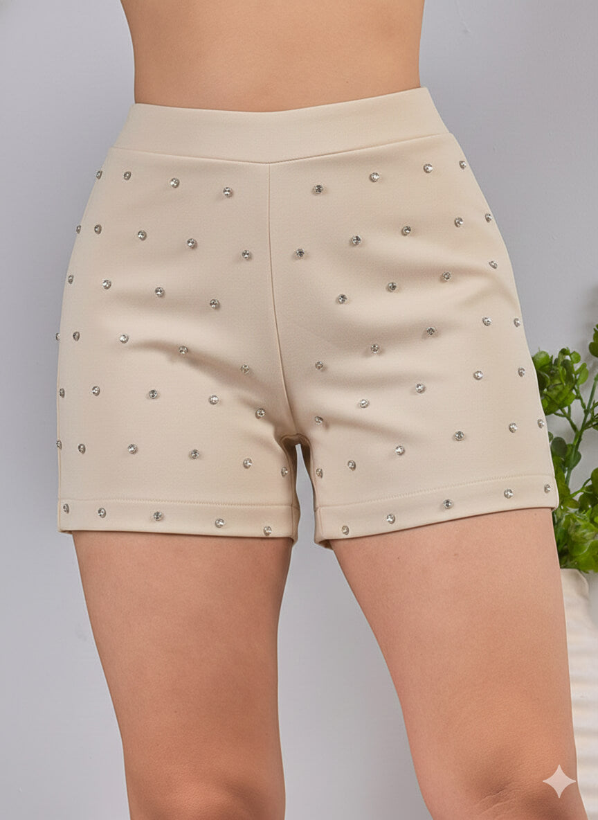 Eleva tus looks con este short de tiro alto decorados con apliques que aportan un toque moderno y femenino sin perder comodidad. Su silueta favorecedora y suave al tacto los convierte en una prenda perfecta para combinar con blusas ligeras, tops elegantes o camisetas básicas según la ocasión.