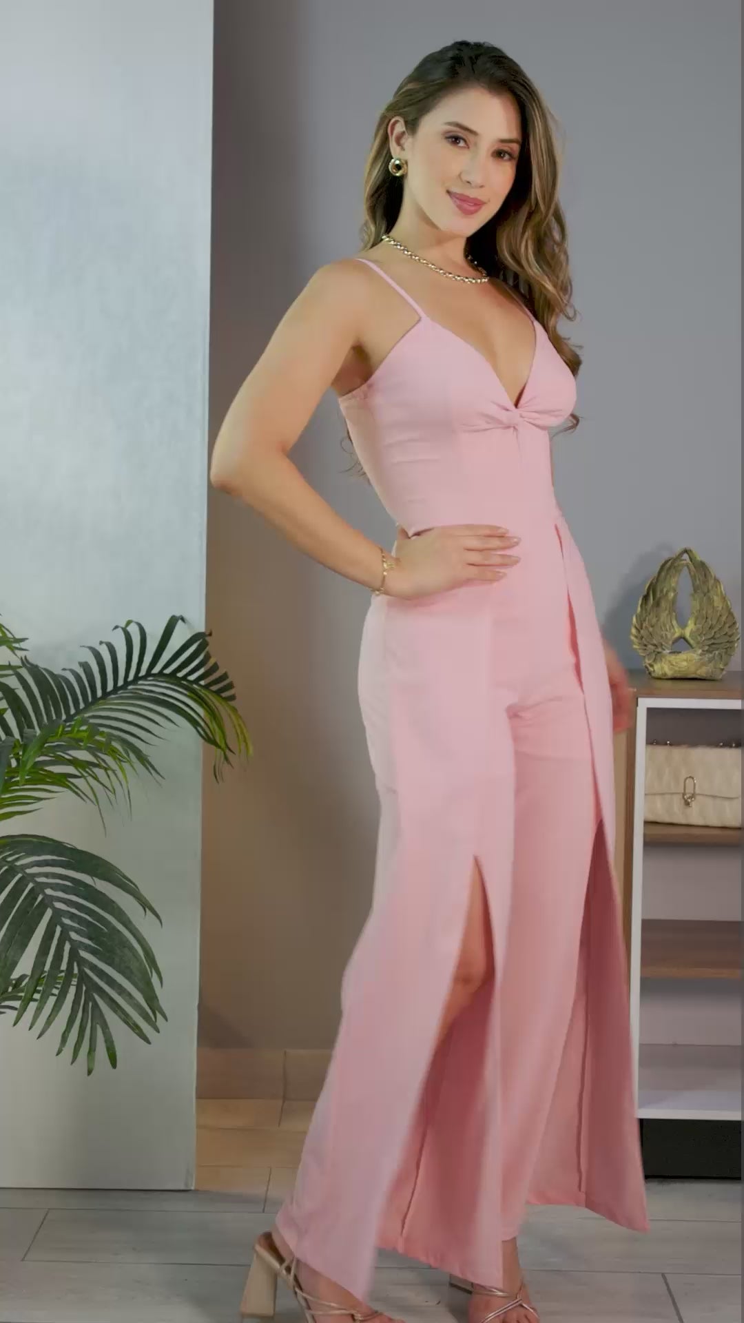 Este enterizo es una mezcla perfecta entre elegancia y frescura. Con tiras delgadas, escote corazón y aberturas frontales en las piernas, estiliza la figura mientras brinda un toque moderno y sofisticado.