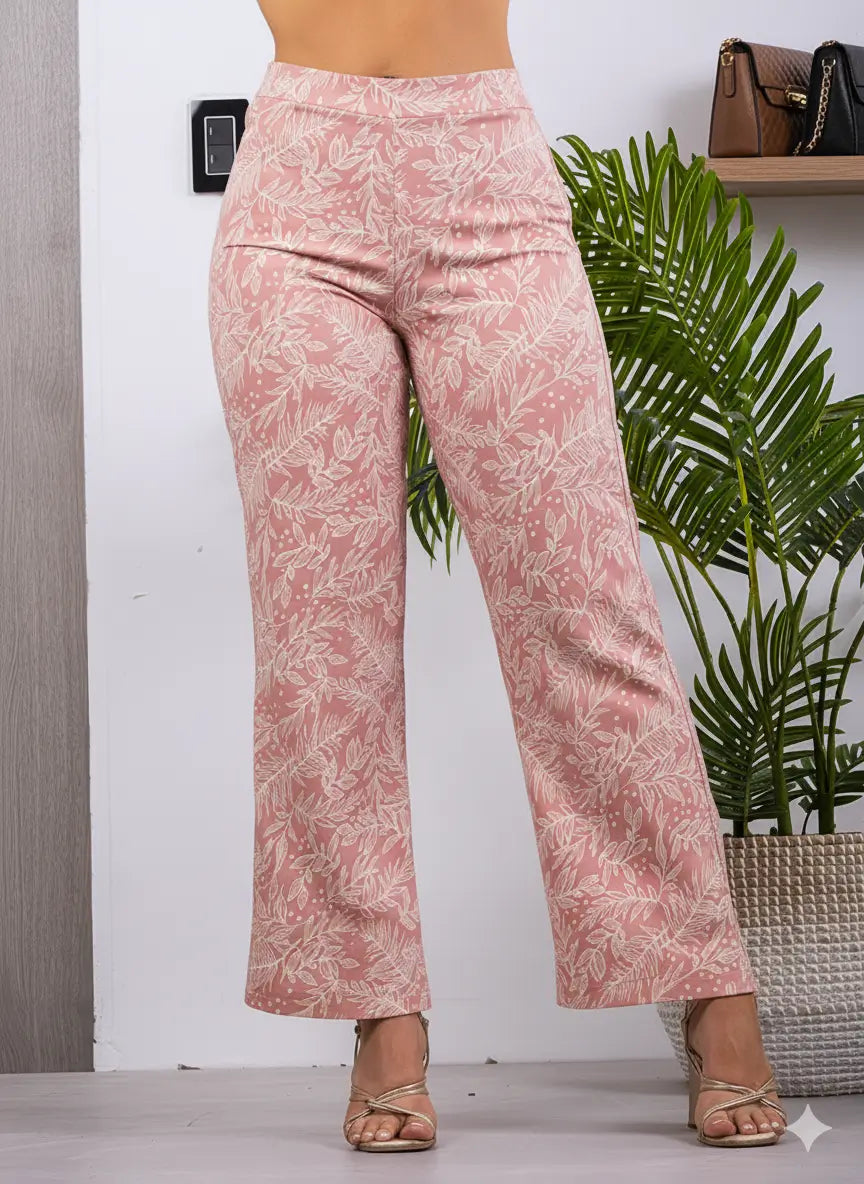 Este pantalón de tiro alto con estampado botánico y acabado satinado es ideal para looks frescos y elegantes. Su corte recto y fluido aporta movimiento y comodidad, mientras que el diseño sutil lo hace fácil de combinar.